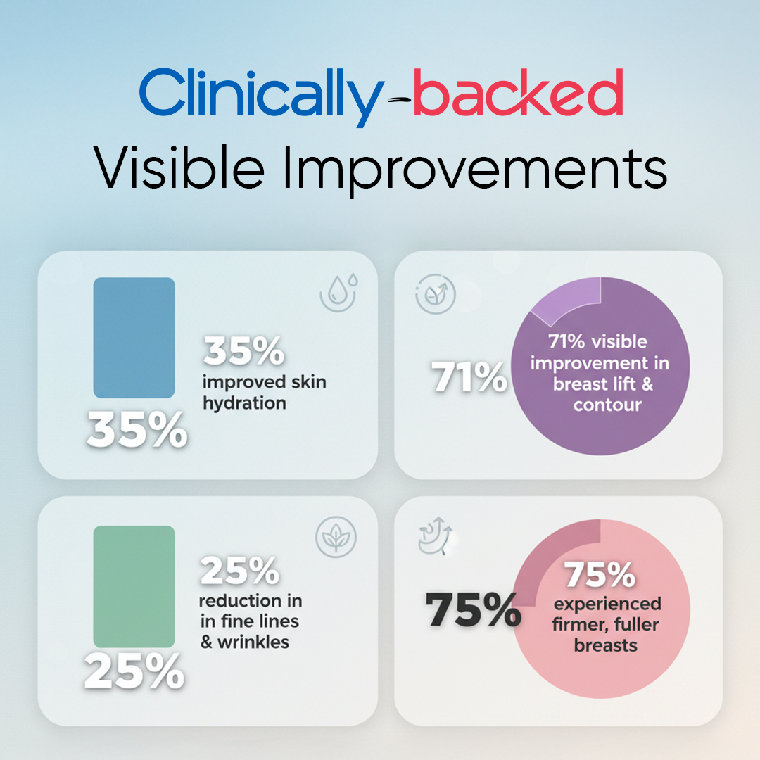✅ Improved skin elasticity + Firmer, toned breast skin