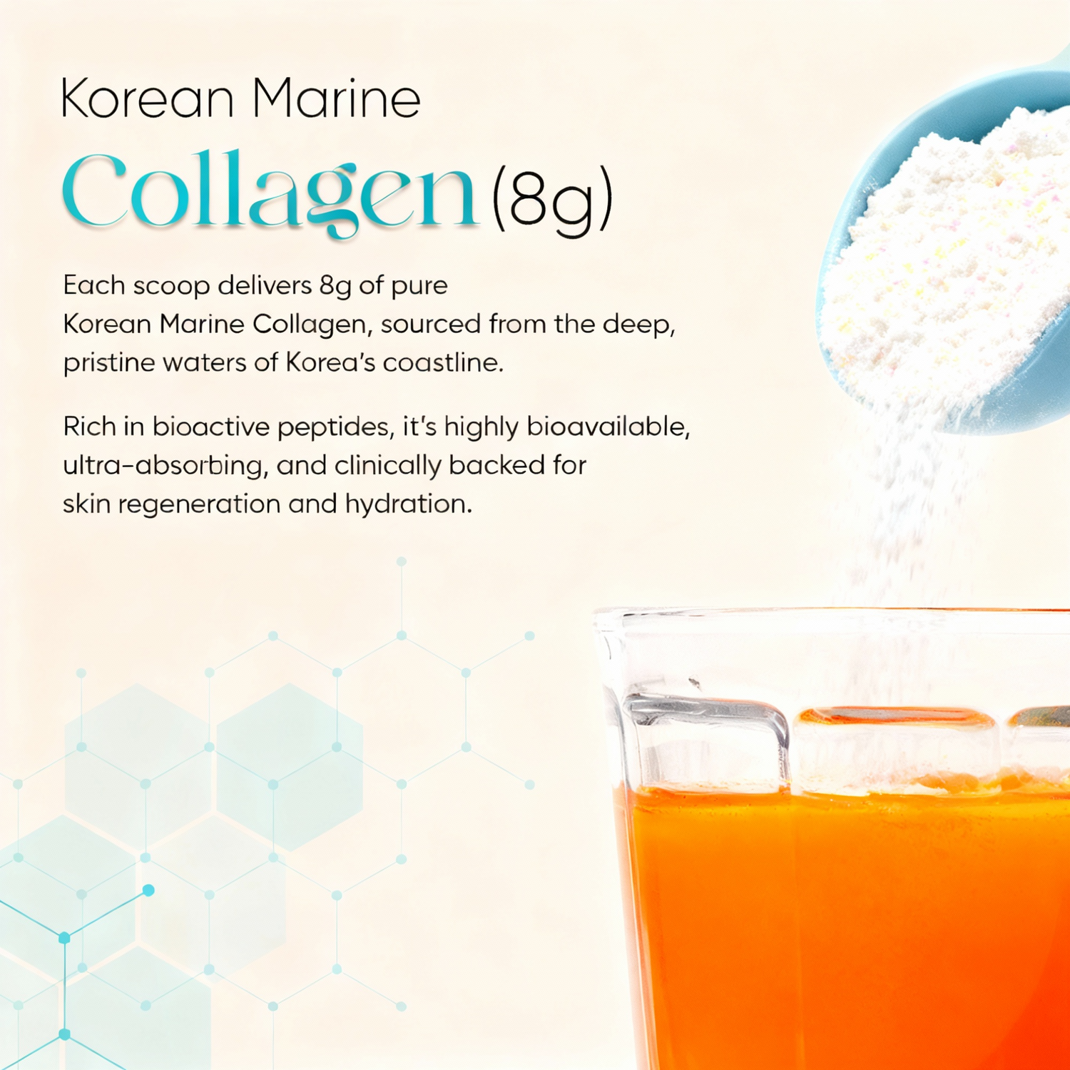 Korean Marine Collagen is crafted with premium Korean deep-sea collagen, known for its purity and powerful results. Using hydrolysed peptides, it absorbs quickly into the body to boost collagen levels with every scoop.